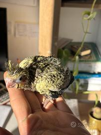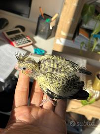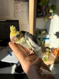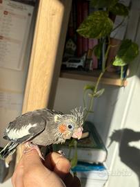 Calopsite allevato a mano, molto docile e affettuoso, abituato al contatto umano e alla vita in famiglia. Socievole, curioso, giocherellone, ama stare fuori dalla gabbia e interagire con le persone. Già svezzato, in buona salute, ideale come animale da compagnia. Abituato ai rumori domestici e alla presenza quotidiana.