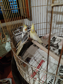 Vendo calopsite un maschio pezzatto circa 8/9mesi la femmina estrema pezzatta 8 mesi Vendo singolarmente a 80 euro in coppia 150 + 20 euro gabbia se si vuole. Chiamare o mandare messaggi al numero 3534559932