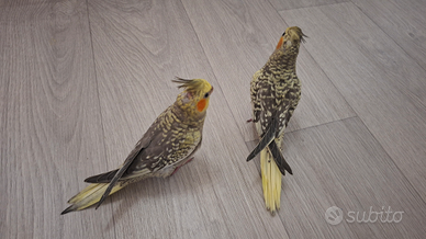 Pappagallini calopsite di quasi 2 mesi allevati a mano , non sono sessati ma direi che sono maschio e femmina molto docili e coccoloni , 100 euro l'uno