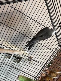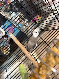 Vendo calopsite faccia bianca NON allevato a mano, anellato, maschio, già fischietta. Prezzo solo calopsite 30 euro Prezzo calopsite e gabbia 60 euro