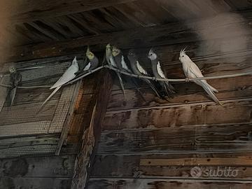 Cedo calopsite di circa un anno. Soggetti già mutati e perfetti. Albini, faccia bianca, ancestrali, perlati, lutini e pezzati. Soggetti allevati in ampia voliera esterna preferibilmente da vendere in blocco