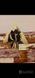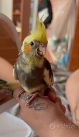Calopsite giovane allevata a mano (circa 1 anno) Vendo calopsite di circa un anno, presumibilmente femmina (non sessata tramite DNA, valutazione basata sul comportamento quindi non certificata). È stata allevata a mano, quindi abituata al contatto umano, ma con il tempo - vivendo insieme ad altri esemplari - è diventata più indipendente. Rimane comunque gestibile. Caratteristiche: - Età: circa 1 anno - Presunto sesso: femmina (non certificato) - Colore: pezzata con maschera gialla e guance arancioni - Svezzata e autonoma - In buona salute Ideale sia per compagnia che per chi ha già altri pappagalli. Per info o altre foto contattami in privato