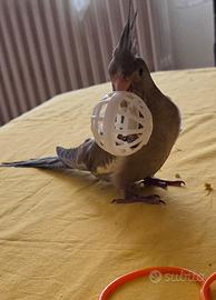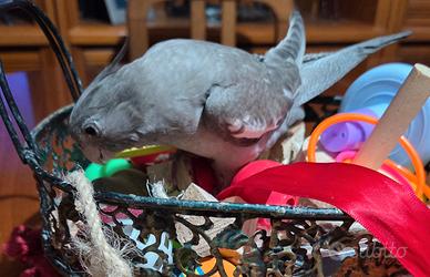 Dolcissima calopsite, maschio, mutazione Silver/Orlato, eta' due mesi. Molto affettuoso e coccolone, cresciuto in ambiente domestico, insieme ad altri soggetti. Genitori visibili. Abituato ad alimentazione adeguata e varia.
