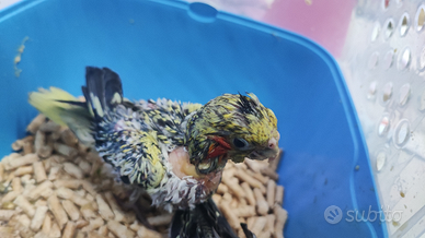 Vendesi pullo di calopsite domestico allevato a mano. Mangia te volte al giorno la pappa da imbecco. Tra poco inizierà a mangiare il panico. Disponibile presso il negozio Viva il lupo via Guido Poli 46 Genova. Vendesi anche gabbie accessori e mangimi specializzati. Per informazioni, fuori video e prenotazioni 3203132982