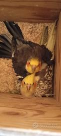 Disponibili pulli di calopsite da allevare a mano varie mutazioni, faccia bianca, arcestrali,lutino,pezzato e un albino. X info tel 3935785437 Salvo