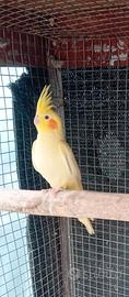 Coppia di calopsite affiatata di un anno, maschio ancestrale e femmina lutina, 60 euro la coppia ,più un pullo da imbeccare a mano 25 euro, prendere anche separatamente, contattatemi watsapp ,no perditempo