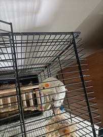 Vendo per mancanza di tempo Calopsite allevata a mano un anno di vita, completa di gabbia