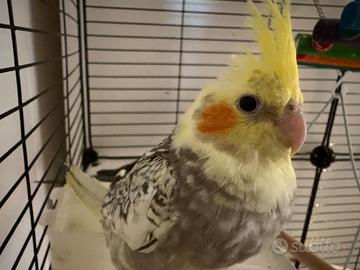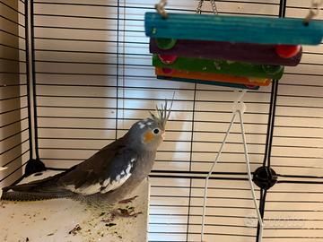 Vendo coppia di calopsite nate in casa, attualmente hanno 2 mesi e mezzo. vengono ceduti con voliera, trasportino, giochi, mangime