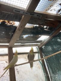 Bellissimi calopsiti lutino e perlato. Lutino circa 3/4 mesi, perlato circa 6/7 mesi. Il perlato è allevato a mano