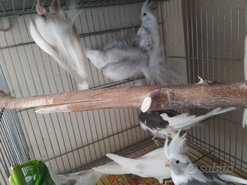 disponibili bellissimi esemplari di pappagalli calopsite mutazione faccia bianca sia pezzati e pezzati estremi che pezzati perlati tutti sessati ed anellati . non allevati a mano