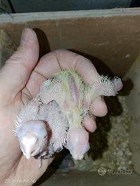 Pulli anellati Foi albini e lutini 15/17 giorni pronti per l'allevamento a mano. 50 euro genitori (Maggiorati)