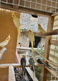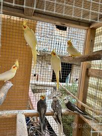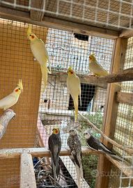 Disponibili diverse coppie adulte di due anni di vita quindi riproduttive e già formate, e anche disponibilità di cedere maschi e femmine singolarmente sempre adulti, specie di pappagalli di nome Calopsitta disponibili diverse colorazioni tra cui lutino (sarebbero gialle con occhi rossi) e perlate faccia bianca (portatori di albino), tutti i soggetti sono schiusi da me, quindi allevate sempre nelle apposite voliere molto spaziose, senza mai subire stress da viaggio, i soggetti sono stati sempre allevati all'esterno quindi abituati a temperature sia invernali che estive, allevate sempre con ottimi semi e vitamine, piumaggio e forma perfette, inoltre tutti in ottima salute come si può dimostrare dalle foto e dal piumaggio liscio e ben lineare senza mancanza di penne o altro, il prezzo cambia in base alla colorazione, i prezzi verranno rilasciati al diretto interessato che dovrà prima specificare quale dei due colori acquistare, astenersi assolutamente perditempo o criticatori, scambio SOLAMENTE con animali di mio gradimento quindi con tartarughe di terra anche piccole a pari prezzo (logicamente), non scambio con nessun altro genere di animale, grazie e buon proseguimento.!.