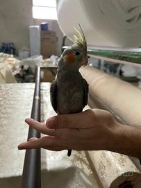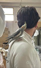 CEDO CALOPSITTA DI 5 MESI, ALLEVATO A MANO CON GABBIA E MANGIME 70€