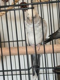 Questa calopsita ha un carattere più riservato e timido rispetto all'altra. È ancora giovane e sta imparando a prendere confidenza con l'ambiente e con le persone, quindi ha bisogno di tempo e pazienza per sentirsi completamente a suo agio. Quando ci si avvicina alla gabbia in modo tranquillo, senza movimenti bruschi o contatto visivo diretto, può avvicinarsi con curiosità. Tuttavia, se viene guardata direttamente o percepisce attenzione su di sé, tende a spaventarsi e a mantenere le distanze. Mostra comunque alcuni segnali di curiosità e, con il giusto ambiente sereno e un po' di pazienza, potrà sicuramente aprirsi sempre di più. Ha un piumaggio molto bello e un aspetto davvero affascinante. ? Ideale per una persona calma, paziente e disposta ad accompagnarla gradualmente nel suo percorso di fiducia.