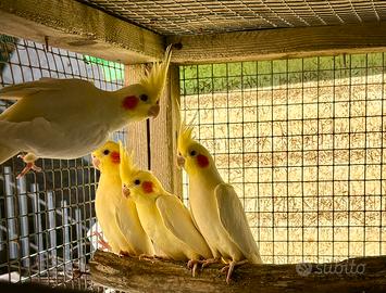 Disponibili diverse coppie adulte di due anni di vita quindi riproduttive e già formate, di pappagalli Calopsitta disponibili diverse colorazioni tra cui lutino (sarebbero gialle occhi rossi), e perlate faccia bianca portatore di albino (quindi per genetica i futuri pulli nasceranno faccia bianca e anche albino "quindi bianchi") , tutti i soggetti sono schiusi da me, si cedono sia in coppie che appunto maschi e femmine singole sempre in fase adulta, animali allevate sempre nelle apposite voliere molto spaziose, senza mai subire stress da viaggio, i soggetti sono stati sempre allevati all'esterno quindi abituati a temperature sia invernali che estive, allevate sempre con ottimi semi e vitamine, piumaggio e forma perfette, inoltre tutti in ottima salute come si può dimostrare dalle foto e dal piumaggio liscio e ben lineare senza mancanza di penne o altro, il prezzo cambia in base alla colorazione, i prezzi verranno rilasciati al diretto interessato che dovrà prima specificare quale dei due colori acquistare, astenersi assolutamente perditempo o criticatori, vendo o scambio SOLAMENTE con animali di mio gradimento quindi con tartarughe di terra anche piccole a pari prezzo (logicamente), non scambio con nessun altro genere di animale, grazie e buon proseguimento!.!..