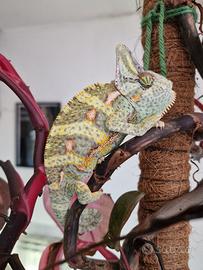 Vendo Maschio di Camaleonte calyptratus...insieme al camaleonte vengono ceduti terrario in rete 60x60x120 e portalampada doppio.