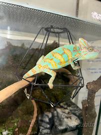 Animale bellissimo e in piena crescita, ideale per chi vuole un camaleonte già svezzato e ben stabilizzato.