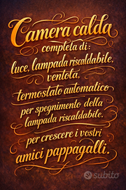 Disponibile camera calda per i vostri piccoli pappagallini da crescere