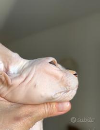 Disponibile bellissima femmina intera di pura razza Canadian Sphynx. Pedigree Anfi Passaggio di proprietà. Libretto sanitario Microchip Test fiv,felv,hcm negativo. Per info .3923555106