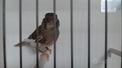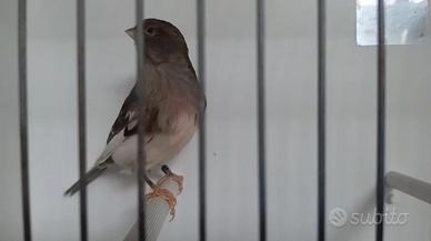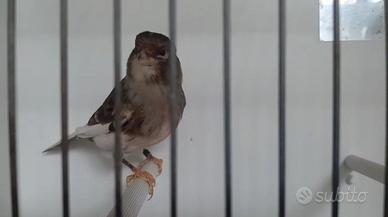 Cedo canarina femmina pezzata 2025 allevata all'esterno a luce naturale. Ottima per ibridare Pancia bella gialla e piena di grasso
