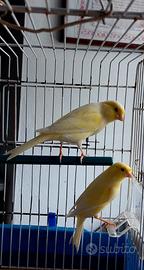 Vendo due coppie canarini molto belli (giallo mosaico le femmine e giallo intenso i maschi), sanissimi, nati a giugno e luglio 2025 pronti per la cova. Prezzo per ciascun canarino