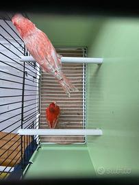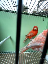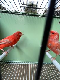 Vendo Coppia di Canarini Agata Opale Rossi maschio intenso, femmina brinata, anno 2022/2024 anellati... coppia così composta 50€ ceppo campione Modena e Mondiale, selezionatissimi, in salute, abituati all'esterno, imbeccano e sono riproduttivi.