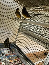 Cedo coppia di canarini arricciato del nord e tre femmine nero giallo intense 2025 a Terni.
