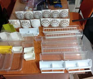 Vendesi esclusivamente in blocco: n° 33 beverini n° 28 mangiatoie n° 05 altalene n° 20 mangiatoie antispreco n° 26 porta pastoncino n° 19 porta vitamine n° 14 posatoi n° 09 posatoi singoli n° 04 portamela n° 04 posatoi ramo grandi n° 12 pinzette n° 07 porta biscotto n° 06 bagnetti n° 12 contenitori per nido n° 08 mangiatoie grandi