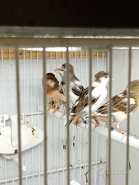 Canarini novelli 2025 rossi e di razza arlecchino. 15 euro cadauno.