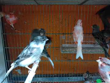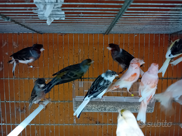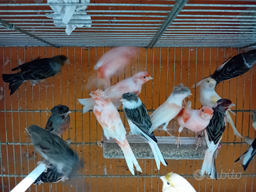 Disponibili canarini arlecchini portoghesi giovani e adulti, vari sessi allevatori Foi. Per info solo contatti telefonici e whatsapp 3348376385/3334813899.