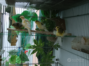 Cedo 5 coppie di canarini + la gabbia con tutti accessori per motivo trasferimento