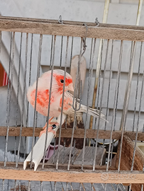 Vendo 2 ottimi maschi di canarini, agata opale rosso mosaico anellati foi, anno 2025.quasi pronti per la riproduzione.