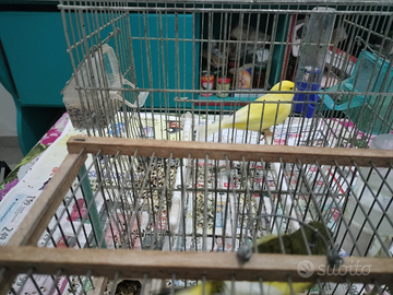 Cedo n 4 canarini 2 maschi e 2 femmine. Una coppia bianca e gialla. Una coppia maschio giallo e femmina gialla e verde. Inoltre ho a disposizione delle piccole gabbie del tipo cinciallegra in legno e ferro zincato.