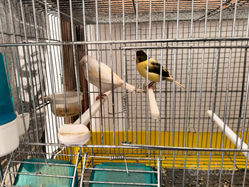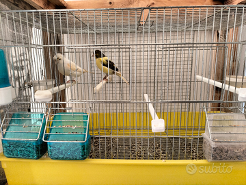 Vendo coppia di canarini compreso di gabbia