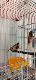 Vendo 5 coppie di canarini mutazioni diverse una coppia di spagnoli maschio giallo pezzato femmina bianca, una di femmina phaeo per maschio bruno portatore di phaeo, una coppia portoghese, una coppia nero pastello ala grigia, una coppia femmina agata satine' giallo mosaico maschio nero Jaspe mosaico rosso , non scambio si vendono a coppia il prezzo è riferito a singolo
