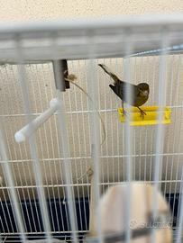 Vendo canarini nati a febbraio 2025 in riproduzione con gabbia accessori e cibo