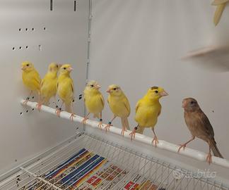 Come da titolo si cedono bellissimi canarini sia riproduttori 2024 che novelli 2025.