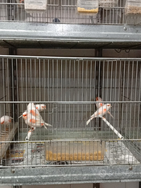 Vendo coppie di canarini mosaico linea maschile e rosso ala bianca coppie già formate prontissime, fanno già il nido al prezzo di 40€ Telefonare al 333 9050720