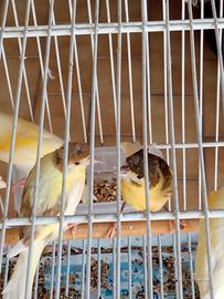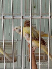 Vendo canarini gialli spagnoli €10 Pezzati sono timbrado due con ciuffo €20 come da foto. NO PERDITEMPO Nati il primo di Marzo