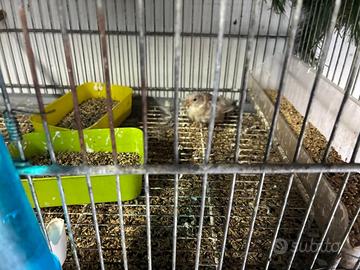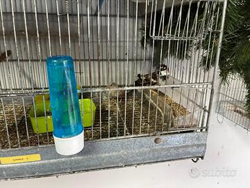 Vendo due batterie a tre piani da 120 con carrellino e due batterie da quattro piani con carrello due con mangiatoie esterne due con mangiatoie interne rispettivamente 100 e 120 euro. Gabbie da 45 55 60 90 e 120 e accessori vari. Dodici canarini bianchi sei maschi e sei femmine 15 euro l'uno. Quattro ibridi incardellati tre maschi e una femmina 25 euro maschio 10 euro femmina due passeri nati in gabbia mutati bianca e portatore di bianco maschio e femmina.