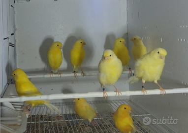 Per riduzione allenamento, vendo blocco di 30 canarini. I canarini sono di varie razze e vari colori. Disponibile a qualsiasi chiarimento. Massima serietà no perditempo.