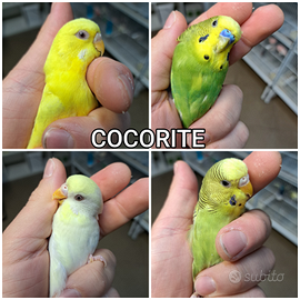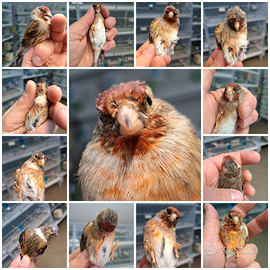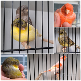 Disponibili canarini selezionati, incardellati e cocorite di varie mutazioni, ideali sia per appassionati che allevatori. Disponibili anche gabbie e mangimi. CANARINI Canarini Gloster -> 15€ Canarini Razza Spagnola -> 15€ Canarini Rossi e Mosaico -> 20€ Canarini da canto Timbrado Spagnolo -> 20€ INCARDELLATI (Cardellino x Canarina) Femmine -> 10€ Maschi -> 80€ COCORITE Colori comuni -> 15€ Portatori Ala Nera (Black Wing) -> 30€ Ala Nera (Black Wing) -> 50€ Portatori Faccia Nera (Black Face) -> 50€ Faccia Nera (Black Face) -> 90€ Hagoromo -> 40€ ACCESSORI Gabbie da cova zincate 55/58, complete di accessori -> 25€ Semi sfusi per canarini e cocorite -> 2,50€/kg Disponibilità immediata Contatto: 347 9646581 (telefono / WhatsApp) Per info, foto e dettagli contattare senza impegno o venite a visitare il nostro allevamento.