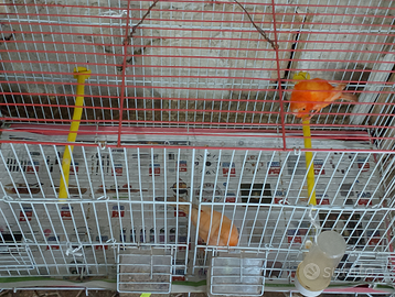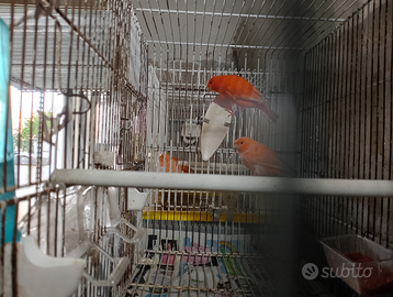 Vendo coppia di canarini rosso intenso di cui maschio rosso intenso e femmina brinata .
