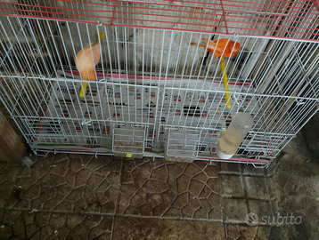 Tenuti in ambiente pulito e santificato e alimentati con mangime e frutta e verdura e trattamento per coccidiosi e vitamina.