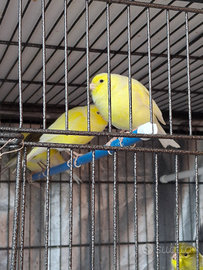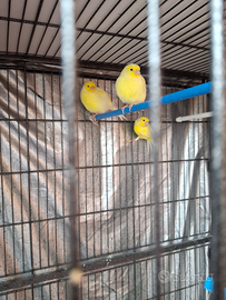 Disponibili canarini maschi maggio 2025, pezzati, e gialli come in foto. VENDO O SCAMBIO CON FEMMINE se possibile bianche o rosse, visto che sono a corto