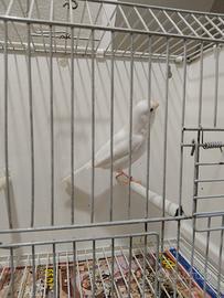 Salve: Disponibili 2 bellissimi maschi di canarini. 1 arlecchino portoghese 2025 1 bianco recessivo anellato 2024. Sono un rivenditore. Valuto scambi con altri uccelli