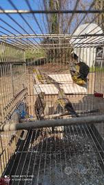 Sono disponibili 4 canarini maschi verde-giallo. Ottimi cantori pronti alla riproduzione. Padre agata giallo mosaico, madre razza spagnola cinnamon. Taglia piccola ottimi per ibridi con lucherine e altro.