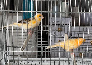 Vendo bellissima coppia di canarini Femmina pezzata ,maschio arancione naturale