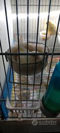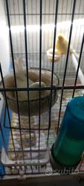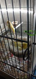 Vendo 2 coppie di canarini femmine occhi rossi maschi portatori una a 2 piccoli di 4 giorni un'altra a r uova piene sono anno 2025 complete di una gabbia da 90 non messaggi solo telefono