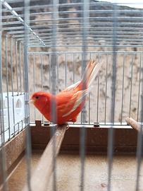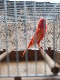 Disponibili canarini rossi intensi e brinati solo maschi a €25 , allevatori Foi pronti per la riproduzione.Per info solo contatti telefonici 3348376385.